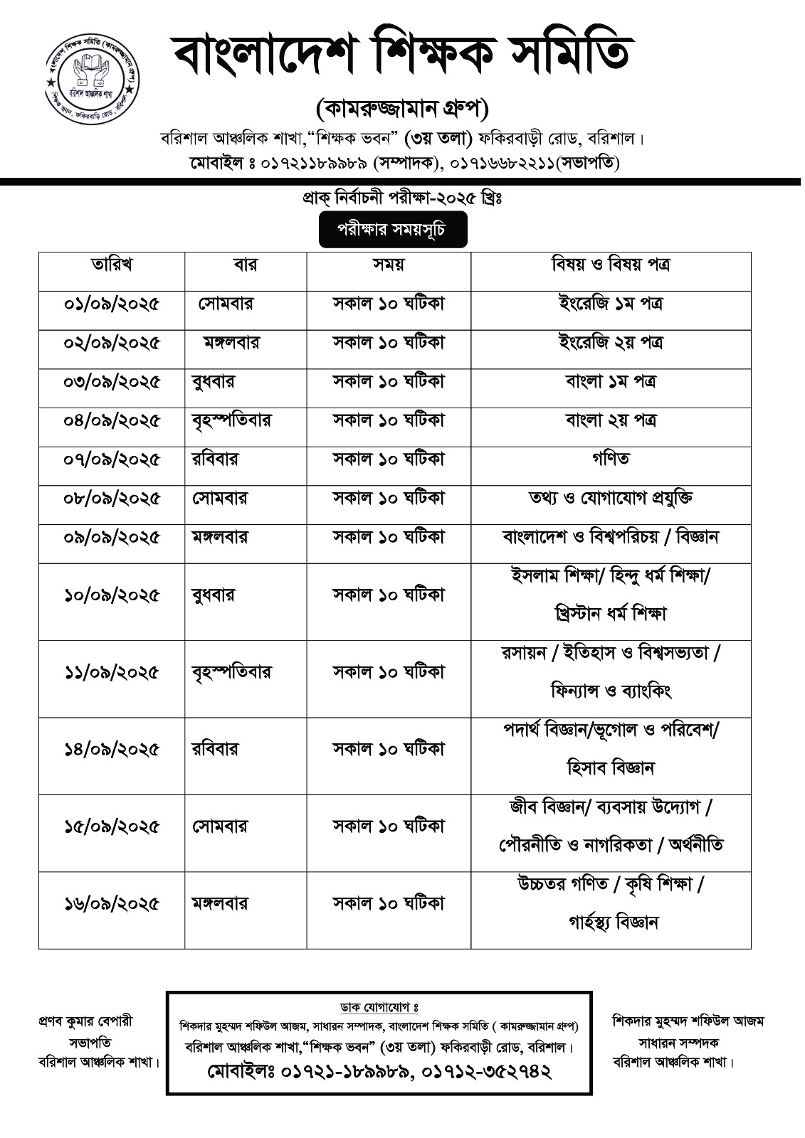 • ম্যানেজি কমিটি নির্বাচন-২০২৫ এর নির্বাচনী তফসিল